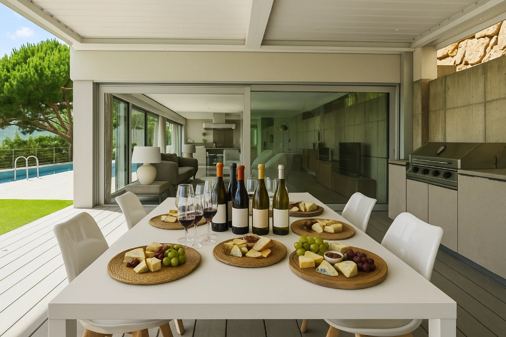 Villa contemporánea que combina diseño, luz y elegancia. Sus grandes ventanales abren el interior al paisaje, creando un diálogo constante entre mar y montaña.